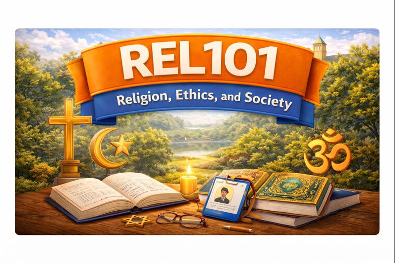 REL101: Religion, Ethics, and Society is a General Studies course that examines the relationship between religion, moral values, and social life in contemporary societies. The course explores how religious beliefs, ethical systems, and cultural traditions influence human behavior, social institutions, and public life. It introduces students to major religious traditions and ethical perspectives, with particular attention to their roles in shaping attitudes toward justice, human dignity, social responsibility, and community life.