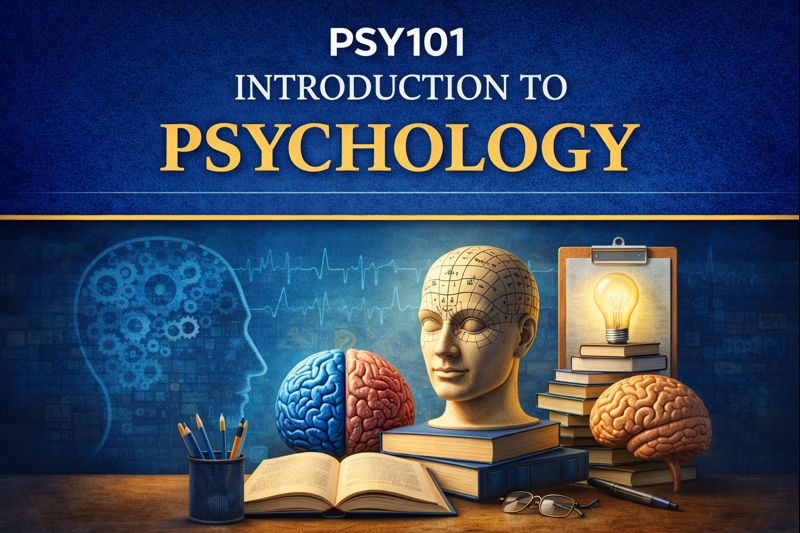PSY101: Introduction to Psychology is a foundational course that introduces students to the scientific study of human behavior and mental processes. The course examines key concepts, theories, and research methods used in psychology to understand how individuals think, feel, and behave across different contexts. It provides students with a broad overview of major psychological perspectives, including biological, cognitive, behavioral, developmental, and social approaches.